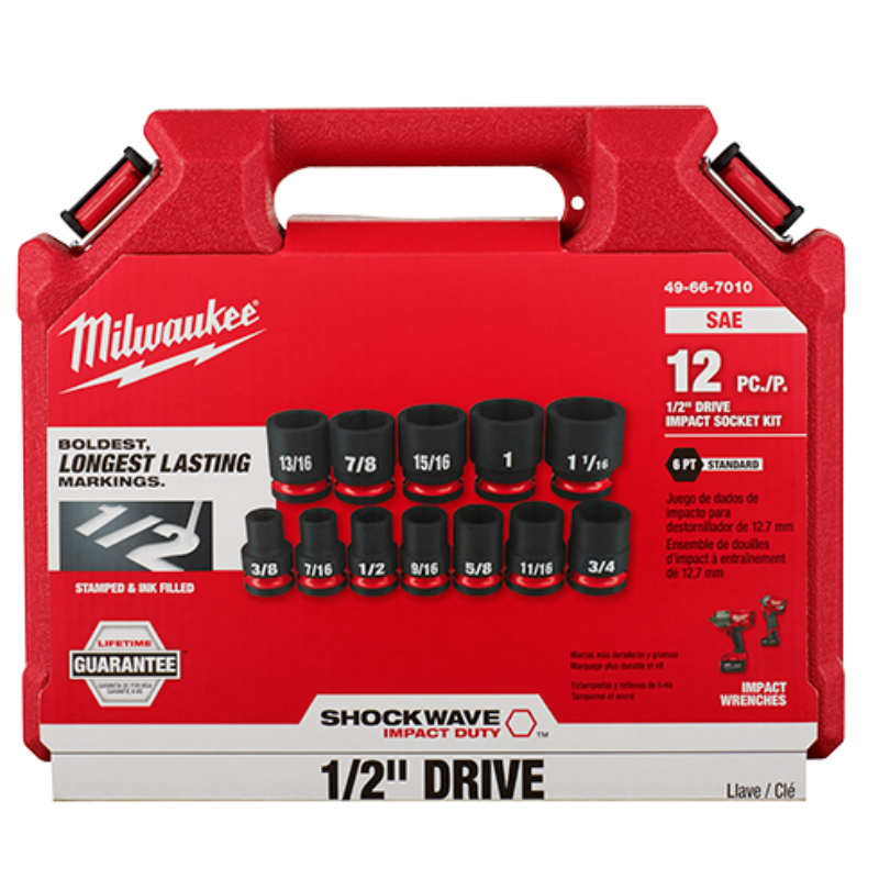 MILWAUKEE® SHOCKWAVE™ 12-Piece 1/2″ Drive Standard Impact Socket Set