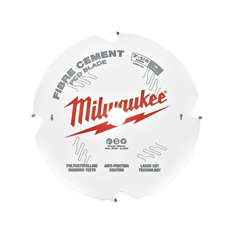 MILWAUKEE® 184mm (7-1/4″) 4T Fibre Cement Circular Saw Blade – PCD Teeth