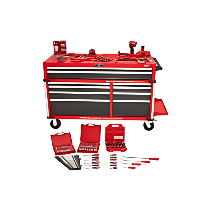 The Milwaukee® 238-Piece Automotive Starter Toolkit is a complete solution for beginners, seasoned mechanics, and DIY auto enthusiasts. Designed to boost productivity and efficiency, this set combines premium hand tools, impact-rated accessories, and a powerful M12™ Stubby Impact Wrench, all housed in a durable 56″ Steel Top Mobile Work Bench.