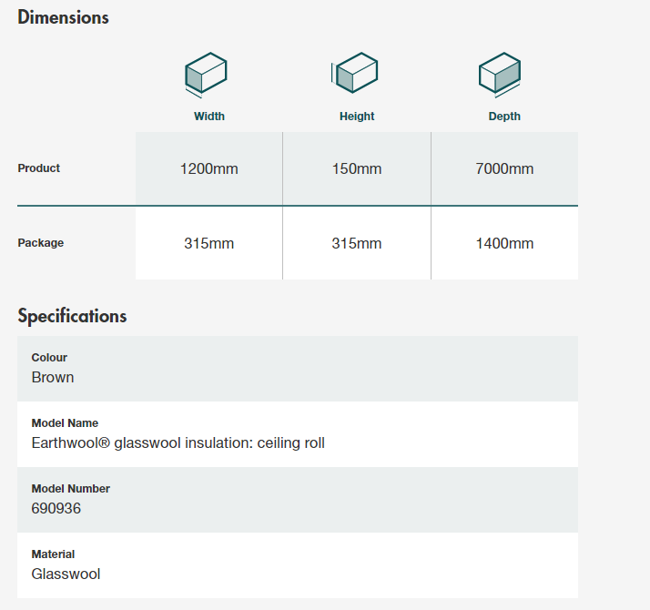 - Coverage: 150mm x 1200mm x 7000mm 8.4m² Ceiling Insulation Roll