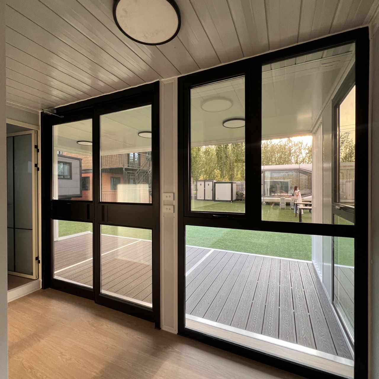 Doors & Windows: Black aluminum double entrance door and windows with double-glazed tempered glass